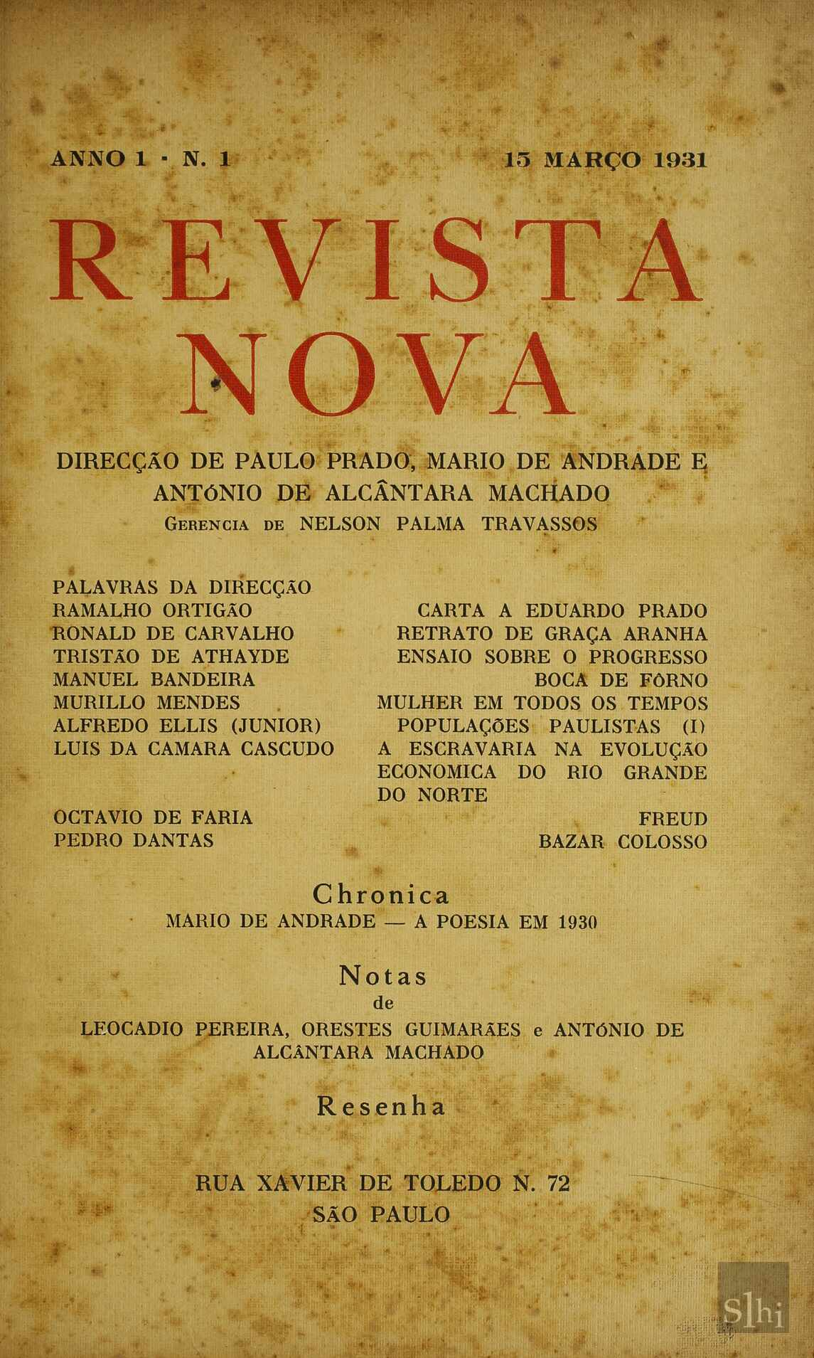 Revista publicada em São Paulo e dirigida por figuras centrais do modernismo brasileiro, como Mário de Andrade, Paulo Prado e Antônio de Alcântara, agora acessível no portal RIC-Revistas de Ideias e Cultura.